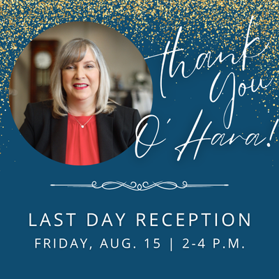 We are holding a reception to celebrate O'Hara on her last day at MAAR! Drop by the lobby for hors d'oeuvres on Friday, Aug. 15, from 2-4 p.m. to wish O'Hara well and thank her for her service and commitment to MAAR!